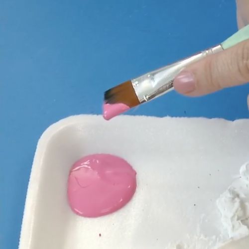 13. Carregue o pituá nº6 na tinta rosa-pink e tire bem o excesso.