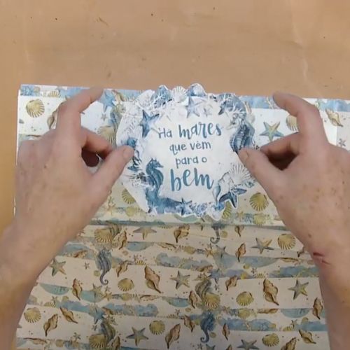 16. Escolha outra frase do papel para découpage e recorte-o para a base da caixa.