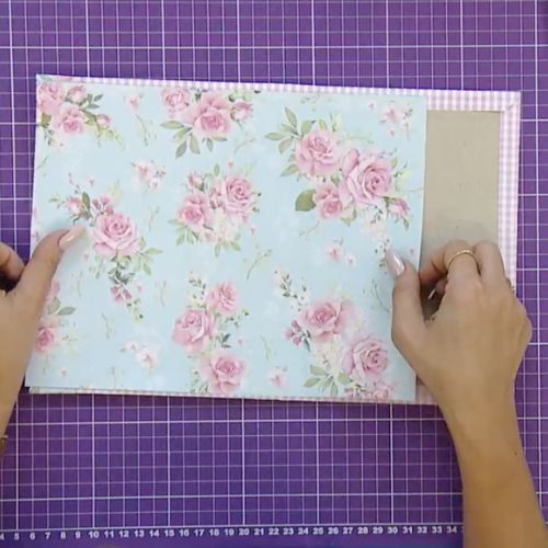 03. Cole sobre o verso de um dos papéis para scrapbook.