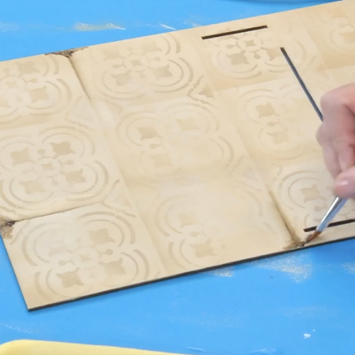 07. Posicione o estêncil na parte superior da placa de MDF.